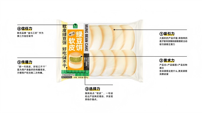 • 傳播力:喜愛并愿意傳播的力量。產品和包裝讓消費者滿意、快樂并以此為傲,消費者愿意分享。同時包裝獨特、好記,有話題性。